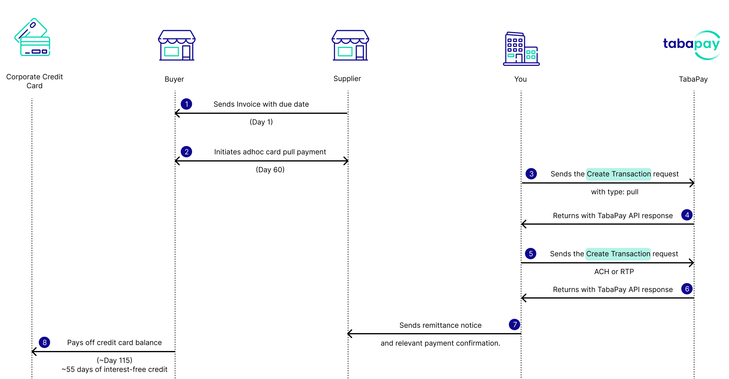 - The BPSP integrates with the Create Transaction API request to pull funds from the Buyer's commercial card.