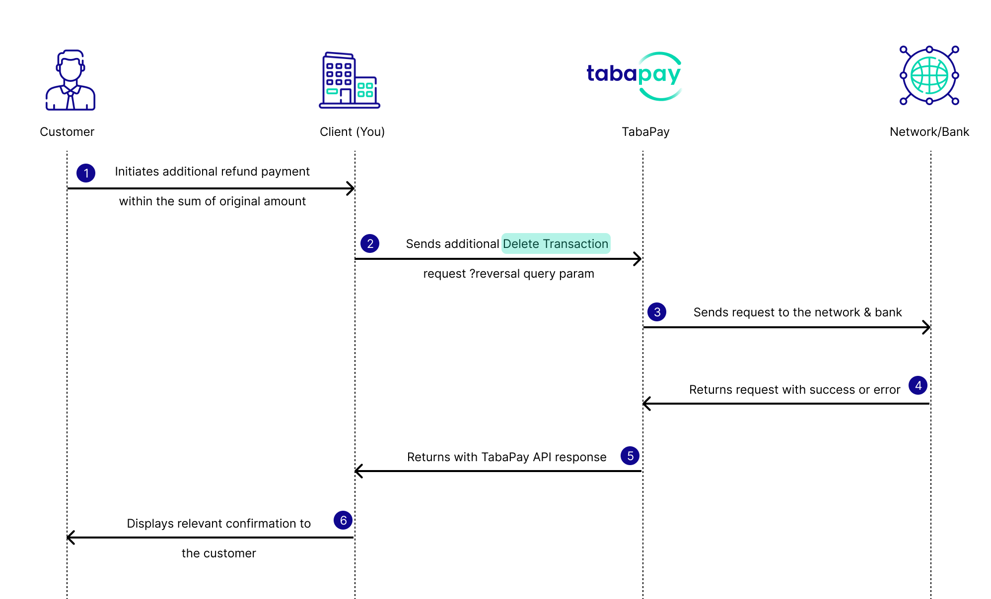 - TabaPay returns the Delete Transaction response.