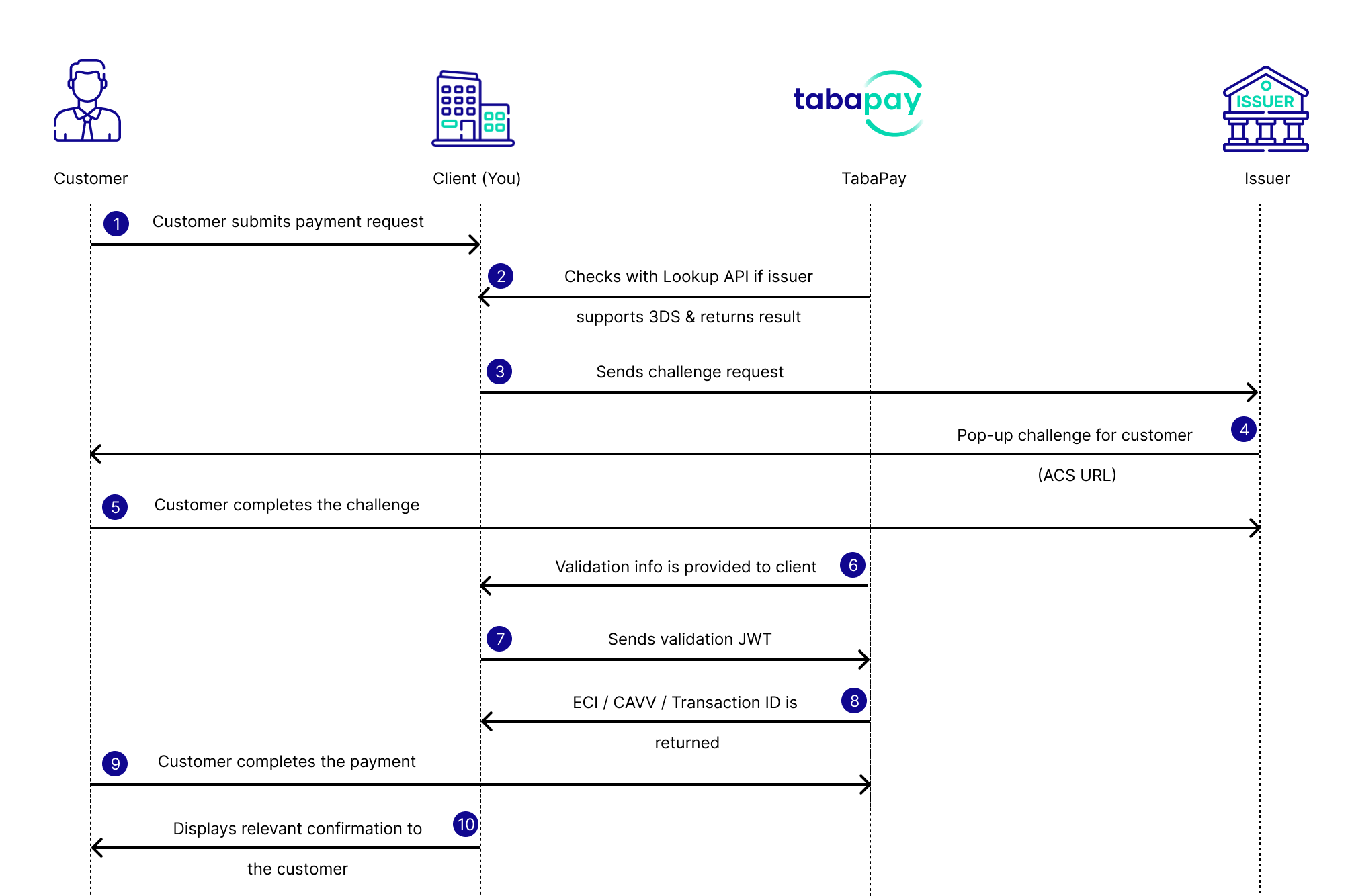 The following is a breakdown of all potential EMV 3DS scenarios that TabaPay supports.